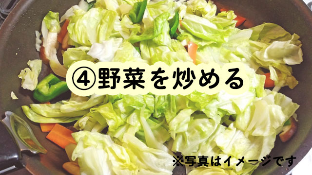 野菜の量と好みによって味付けは調節してください。終わったらお皿などによけます。